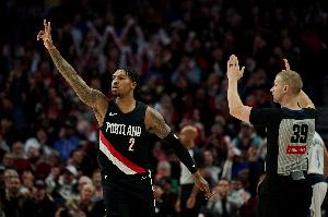 开拓者球员凯莱布·乐福上半场表现相当不错,不仅手感滚烫三分投得十分准,更是半场结束前在中圈送出一记精彩传球助攻夏普完成空接暴扣。