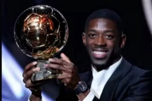 体育资讯9月23日讯 2025年金球奖颁奖典礼在北京时间今天凌晨进行,法国前锋登贝莱获得金球奖。