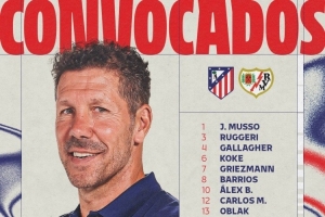 马竞对阵巴列卡诺大名单