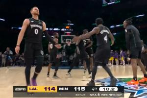 还剩10秒!兰德尔强势上篮!森林狼反超湖人1分!