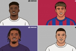 25-26赛季五大联赛成功过人榜:库杜斯第一,亚马尔和姆巴佩上榜