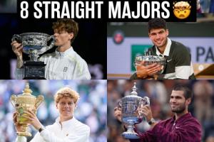 作为00后球员的代表人物,阿尔卡拉斯和辛纳已经一共拿下了10个大满贯冠军(阿卡6+辛纳4)。而90后球员仅仅由蒂姆(2021年美网)和梅德韦杰夫(2022年美网)获得过2座大满贯冠军。