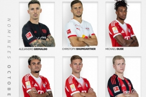德甲10月最佳球员候选:拜仁3将奥利塞、迪亚斯、基米希在列