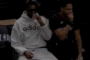 酷!爱德华兹场边帅气装扮悠闲观战 森林狼目前占据场上主动