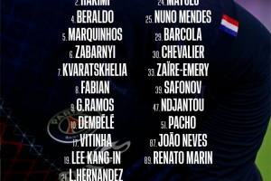 巴黎对尼斯大名单:阿什拉夫、李刚仁、法比安回归,杜埃缺席