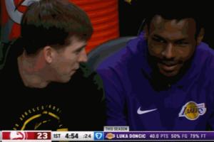 聊啥呢?东契奇罚球不进 里夫斯和布朗尼小声蛐蛐 后者会心一笑
