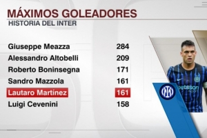 已是传奇!劳塔罗为国米打进161球追平马佐拉,并列队史射手榜第4