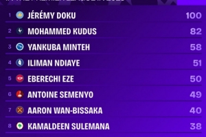 多库是今年首位英超成功过人100次的球员,领先第二名库杜斯18次