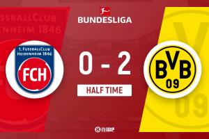 上半场补时6分钟,海登海姆0-2多特。