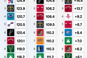 球队进攻&防守效率及净效率排名!火箭进攻效率第1 马刺净效率第1